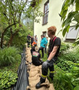 Über zwei Tage hinweg halfen wir beim Befüllen von Sandsäcken und beim Sichern von Gebäuden entlang der Donau, um das Ortsgebiet hochwassersicher zu machen.